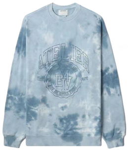 Unisex blue tie-dye crewneck sweatshirt blending classic comfort with modern street attitude. Cloud-wash dye effect with a soft vintage-inspired look. High-quality cotton-blend fleece for breathable warmth.