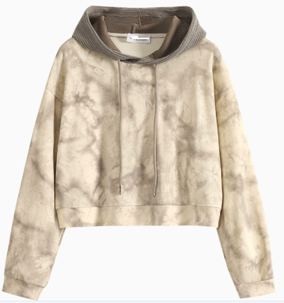 Beige-brown tie-dye cropped hoodie with contrast corduroy hood. Blends modern street style with a soft feminine touch. Premium cotton-blend fabric with a relaxed silhouette — perfect for autumn layering.